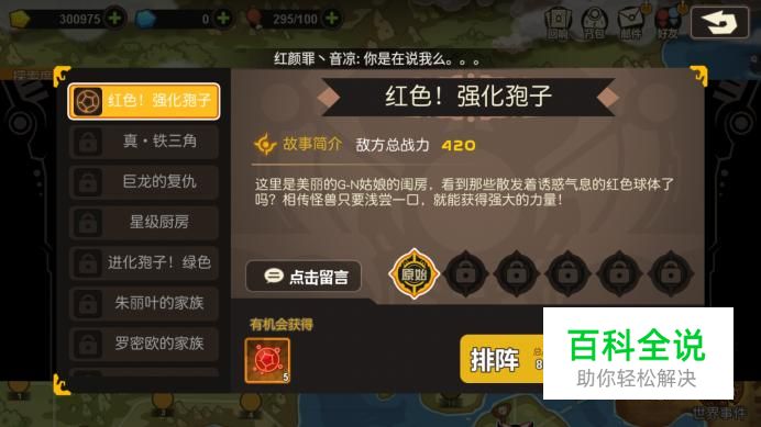 如果你觉得你能够闯关通关的话,可以现在“排列”中强化一下怪兽之类的,提高作战能力。