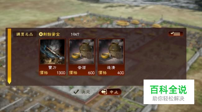 获得的钱用来买礼物送给女方。买礼物的地方就在街上。点击赎买名品即可,有武器,书本,宝物,酒,名马等等类型,不同的武将喜欢的类型也不同,所以送礼也会有所区别。