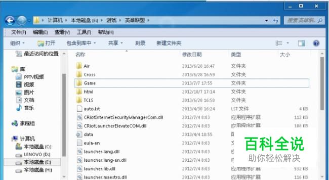 首先,先找到英雄联盟的目录,然后在目录中找到名为Game文件夹并打开。