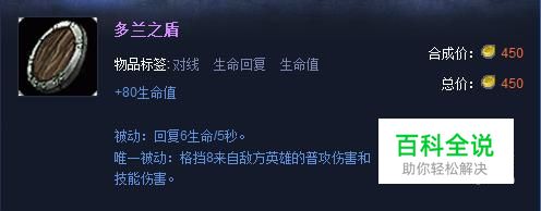 一般都是以“多兰之盾+红药”出门,该件装备的属性对盖伦的提升很大,就算在前中期的时候,都能起到不错的防御作用,再加上s7改版,现在对于前期盖伦这类使用技能快速换血的英雄来说是相当不错的选择;(装备属性:+80生命值,详细被动见图)