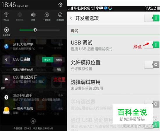 这时候我们就要继续点击一加手机3T中的开发者选项,把其中的调试开关打开。
