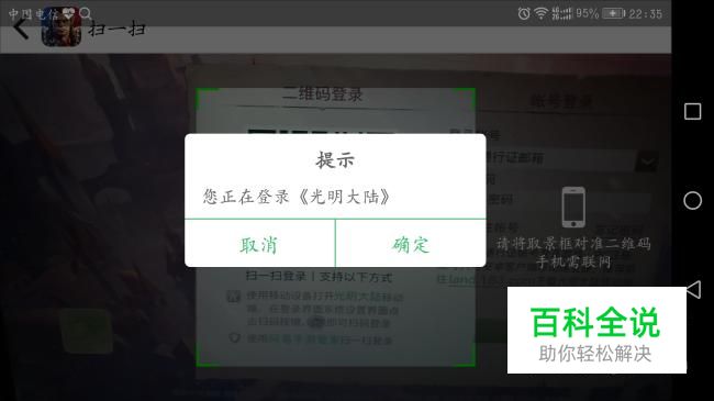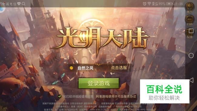 扫码后,我们会在电脑上看到一个光明大陆登录页面,同样也在手机上面看到一个登录页面。注意手机的登录和电脑登录游戏会同时出现。