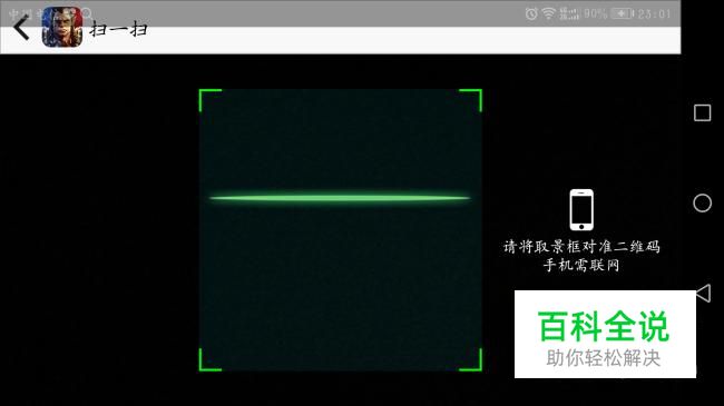 在手机上面我们会看到右上角有四个游戏事件图标。第二个扫码图标就是我们要用的图标。点击它。就会看到一个扫码线在上下波动。