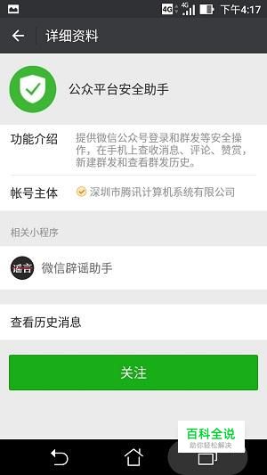 在手机微信上搜索“公众平台安全助手”,点击关注。