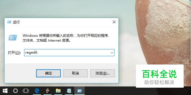 在对话框中输入“regedit”。