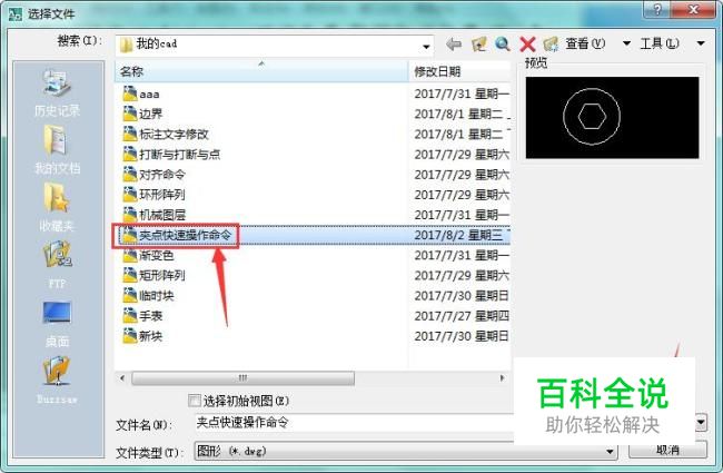 打开图形文件后,点击圆里面的正六边形,能看到出现有六个蓝色的点,就是我们需要操作的夹点,如图所示: