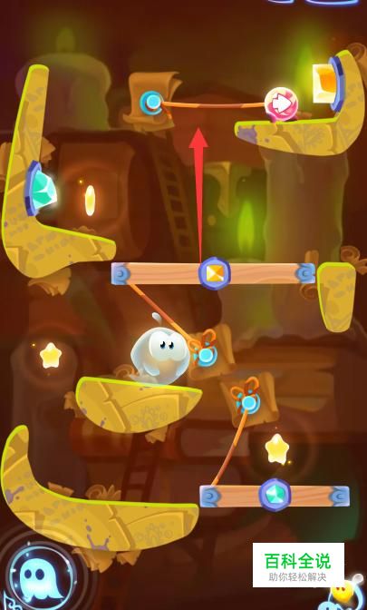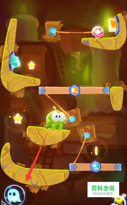 记得在棒棒糖走到图中位置的时候剪断下面的绳子。