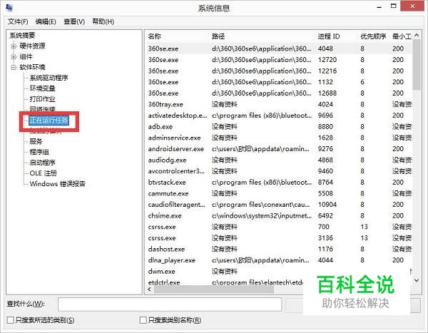 点击”正在运行任务“,右侧即可查看所有运行的程序,包括系统程序。