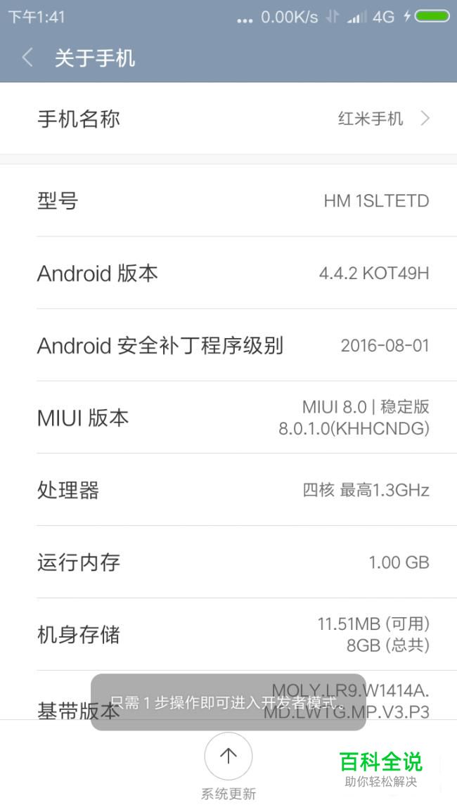 打开“关于本机”,连续点击“MIUI 版本”一栏五次。