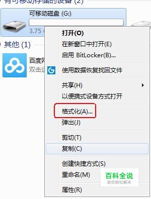 右击U盘盘符,选择“格式化”