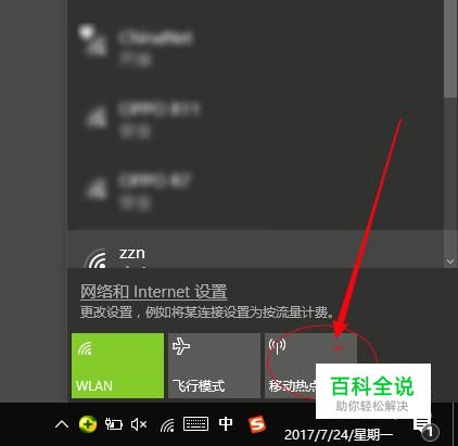 在这里有一个移动热点,如果没有说明不是最新版本的win10系统,需要更新系统。