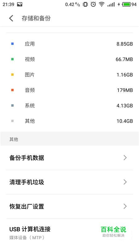 进入手机设置界面,选择“存储和备份”
