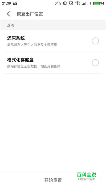 既然怒恢复出厂设置界面,点击想要进行恢复的选项。