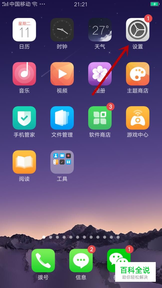 首先我们在OPPO手机桌面点击“设置”,如图所示。