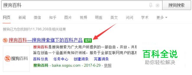 在搜狗搜索中输入“搜狗百科”,如图所示