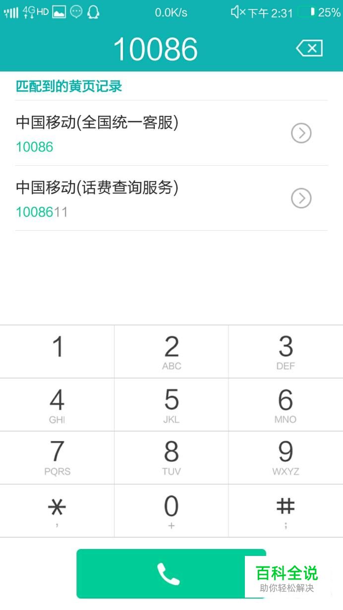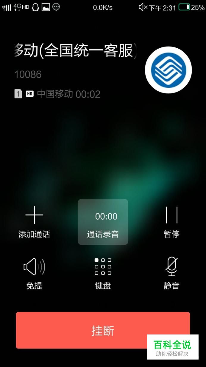 这里我就取个拨打10086电话的例子,输入10086之后,等待的它的接听之后。