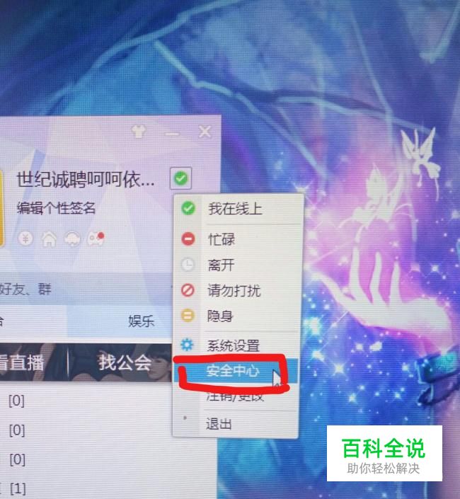 点击绿色勾在线的标志,然后进入安全中心