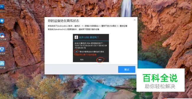 使用数据线将手机连接到电脑,根据提示打开手机的USB调试。