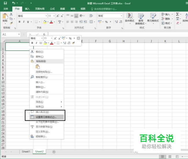 右键单击目标单元格弹出隐藏菜单,选择“设置单元格格式”