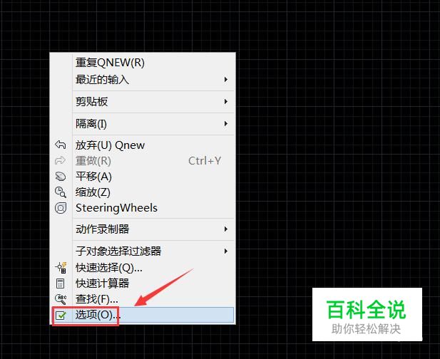 在该界面内点击鼠标右键,在弹出的右键菜单里找到选项选项,如图所示: