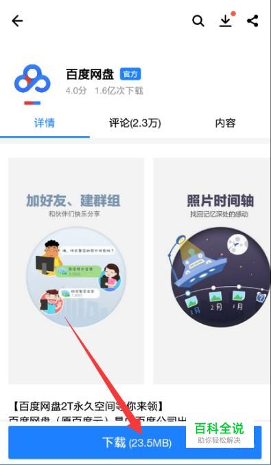 首先在应用商店中找到“百度网盘”app,并点击下载。