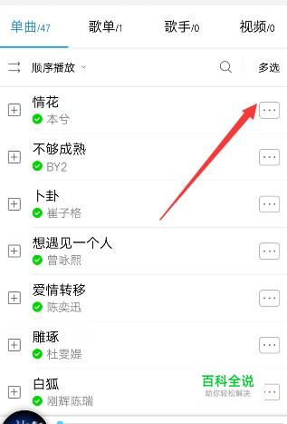 选择需要分享的歌单,点击歌名旁的选项。