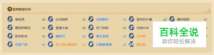 这套猎人加入了很多优质的亡语,让对手十分难受,本身造价也不太高,几张橙卡都可以有选择的去除,当然强度会有所下降,新手玩家不妨根据自己的实际情况合成一套吧。