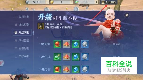 第二种方法玩家可以进入到积分商店获得百年灵芝,首先点击页面上方的“积分商店”按键。