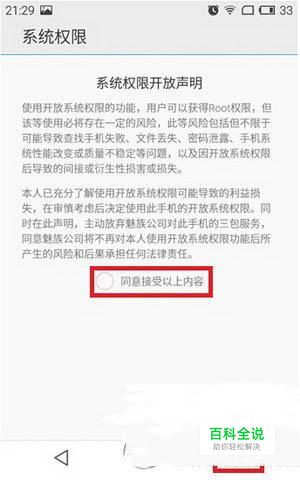 然后再点开root权限,会出现一个系统权限开放说明,点击同意,再按确定