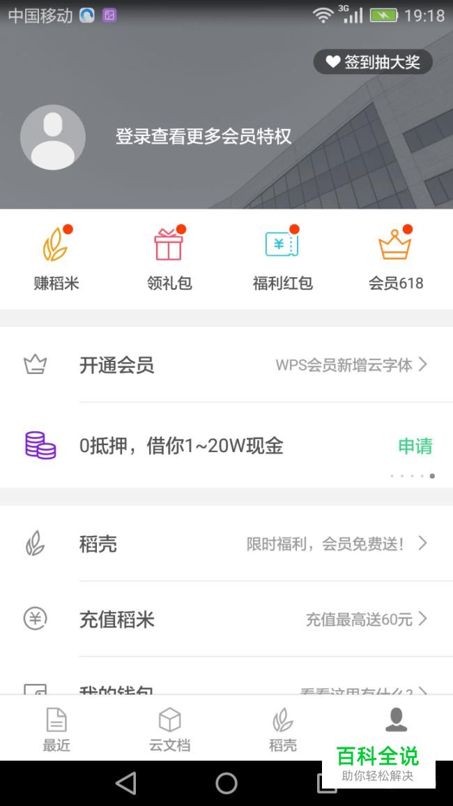 打开WPS,登录账号,这样我们可以将文件保存到云盘。