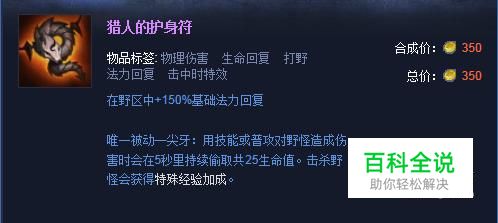 一般都是“猎人的护身符+三瓶红药”出门,常规打野出门装都是这样,赵信本身有吸血,打野不是太伤,而且该装备击杀野怪会获得特殊经验加成;(装备属性:在野区中+150%基础法力回复,其他被动详见图)