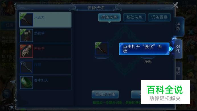 确认强化的装备后,点击“强化”即可消耗道具进行强化。