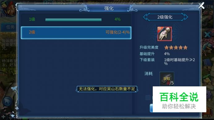 当道具吴山石不够后,将无法进行强化操作。