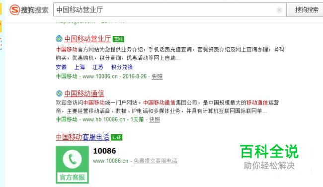 首先我们进入搜狗搜索,输入中国移动营业厅。