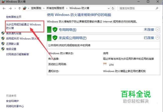 检查防火墙设置。打开Windows防火墙,单击“允许应用或功能通过Windows防火墙”。