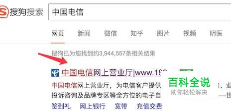 打开搜狗搜索‘中国电信’,点击打开官方网站