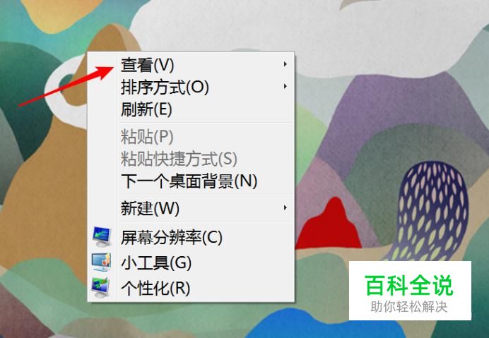 首先第一个方法是点击桌面上的空白地方,在右键菜单上,点击‘查看’