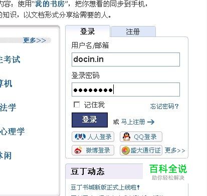 登录豆丁账号,豆丁会自动跳转到我的豆丁