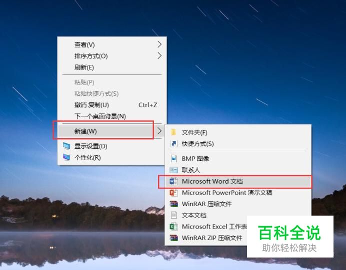 首先,请大家在电脑桌面上击右键,选择“新建-Microsoft Word”文件。