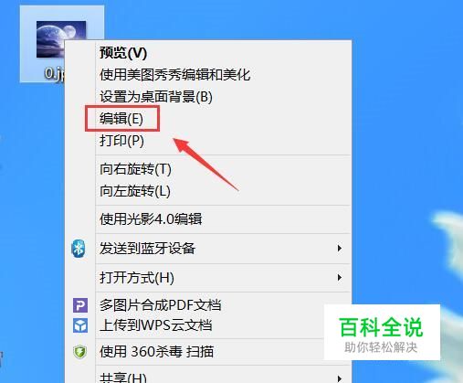 找到我们打不开的jpg文件在该文件上单击鼠标右键在弹出的右键菜单里找到编辑选项,如图所示: