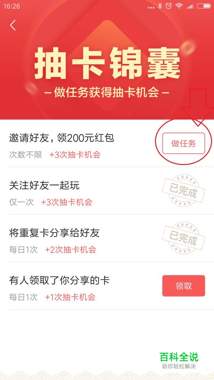 把自己的卡分享出去后,如果有人领取了你分享的卡,那么还可以再增加一次抽卡机会。