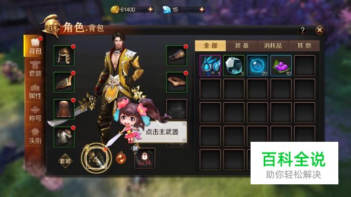 进入游戏主界面,点击右侧“背包”进入个人界面。