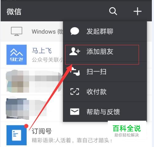 弹出如下所示的下拉菜项,选择第二项“添加朋友”。