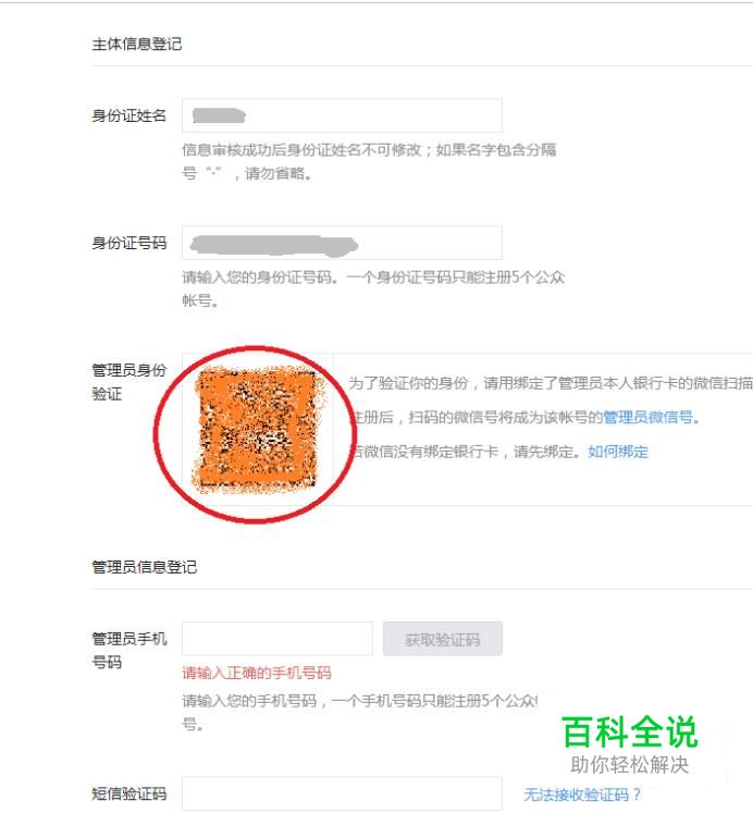 在输入管理员信息的时候,需要用已绑定你的银行卡的微信进行扫码确认,全部填完后,点击提交