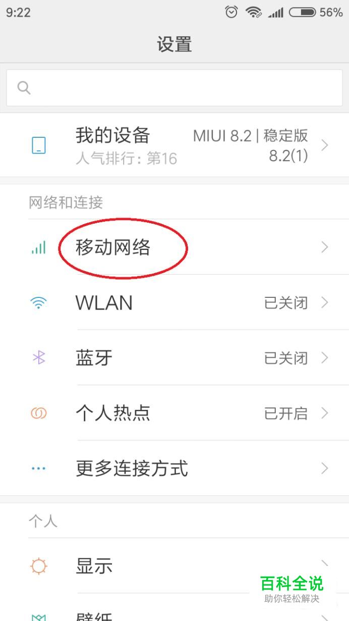 选择 移动网络 打开网络连接