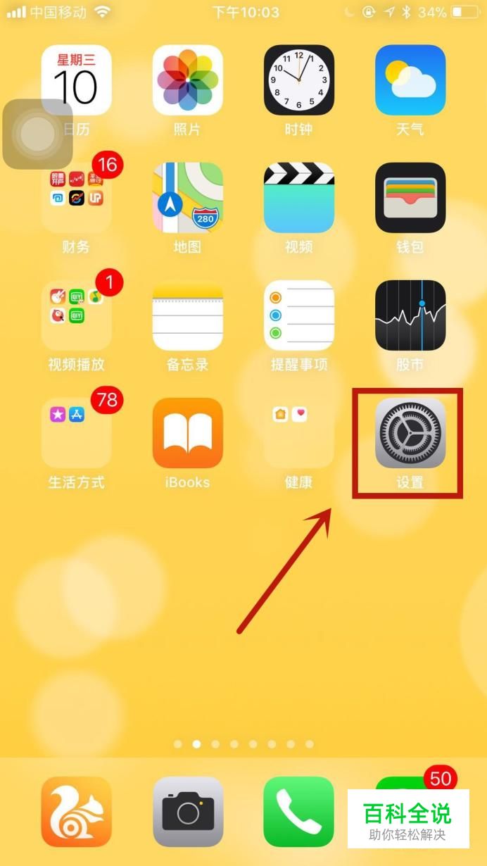 首先在我们的手机桌面上找到设置并点击它,如下图所示。
