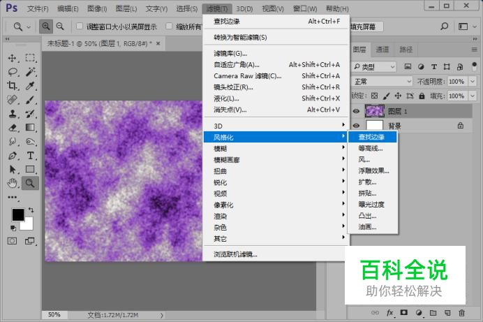 执行滤镜-风格化-查找边缘操作。