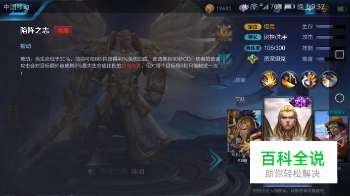 被动技能陷阵之志,当生命低于百分之30的时候获得40%的免伤,大大的增加的他的生存空间,攻击每6秒触发一次对目标造成最大生命6%的物理伤害,造成输出非常客观