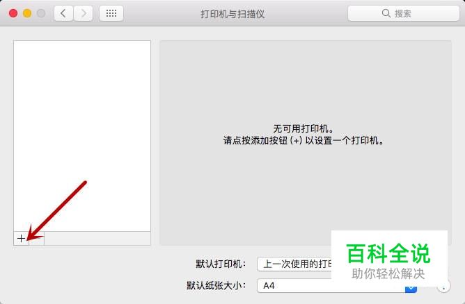 进入打印机与扫描仪设置界面,点击图示位置“+”进行添加。