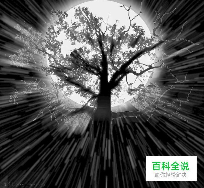 白色树剪影图层中,剪切掉之前黑色树剪影的部分,然后进行“滤镜---径向模糊”这一命令。